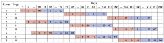 For the room-and-pillar method, the ore field is divided either into panels or into levels, which are excavated by several stages (first stage, second stage, third stage, and so on). After ore extraction, each room is filled with hardening backfill. In some cases, combined backfill can be used for filling the rooms of the second or third stage with dry or hydraulic backfill [31].