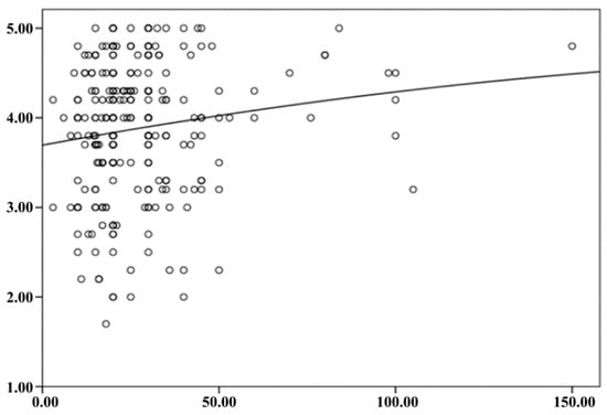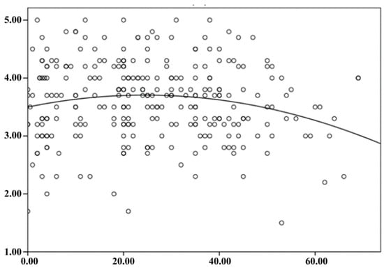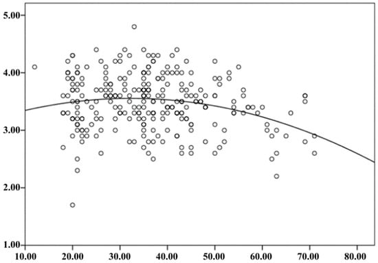 In order to ascertain the specific characteristics of psychological security among residents of Yekaterinburg, a detailed analysis was conducted, taking into account the influence of age and gender using single-factor regression analysis. A correlation was observed between the age of city residents and their assessment of the urban environment as reliable, as evidenced by the comparison of age and parameters of psychological security. The nature of the established relationship is not linear (Figure 6).