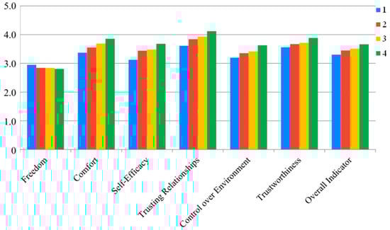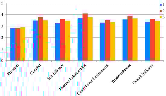 A study was carried out to ascertain the psychological security of city residents. This involved utilizing a methodology devised by O. Yu. Zotova and L. V. Tarasova for measuring psychological security in urban populations [144]. The methodology comprises 38 statements, which are measured on a five-point scale and belong to six subscales: “Freedom”, “Comfort”, “Self-efficacy”, “Trusting relationships”, “Control over the environment” and “Reliability”, as well as an integral indicator of psychological security of city residents (Supplementary Materials).