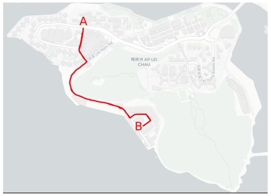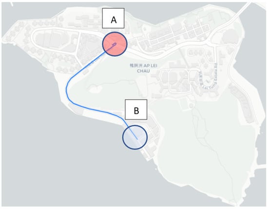 Route from Cluster A to Cluster B on Ap Lei Chau Island.