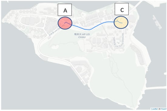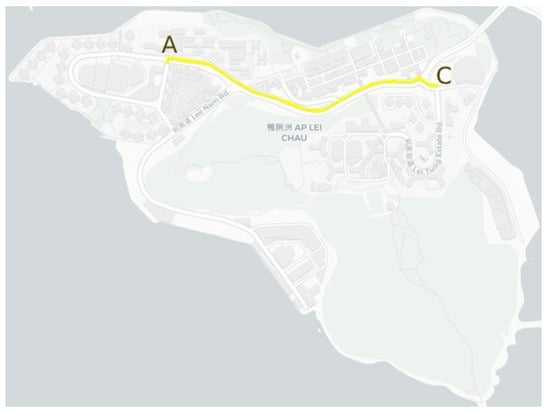 Route from Cluster A to Cluster C on Ap Lei Chau Island.