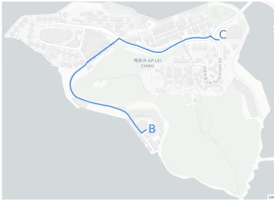 Route from Cluster B to Cluster C on Ap Lei Chau Island.
