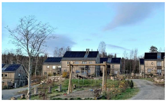 Extremely low embodied carbon in both buildings and minimal site works: Hurdal Ecovillage (GAIA architects Norway, Rolf Jakobsen. Photo by the authors, taken in 2020).