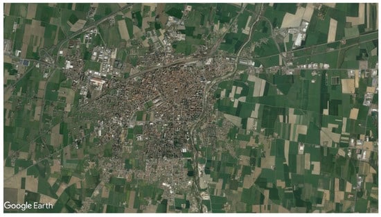 From a settlement perspective, the city developed around its historic center, characterized by its classic pear-shaped form. The urban area expanded to include autonomous villages, Campoferro, Medassino, Torremenapace, and Oriolo, that became neighborhoods of the city (Figure 3).