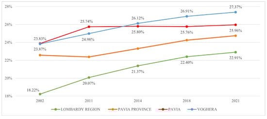 Percentage of the elderly population (source: ISTAT, Voghera’s census).