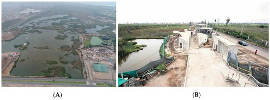 (A) Aerial view of urban expansion, reprinted with permission from Ref. [27]; (B) incomplete infrastructure in Pantanos de Villa, reprinted with permission from Ref. [28].