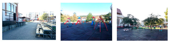 While the city boasts numerous playgrounds, many suffer from neglect and limited space. The vegetation and assets within these spaces often fail to provide a stimulating environment for visitors. Among the 22 analyzed playgrounds (Figure 4), 10 have undergone recent renovations, featuring central toy elements such as children’s castles. Sports fields or equipment are present in only 4 squares, while distinctive elements characterize playgrounds in 5 locations. Additionally, sizable close-to-nature recreational zones are identified in only 3 locations. Efforts have been directed toward mitigating potential hazards; however, the integration of safe play elements and the provision of barrier-free pedestrian access remains lacking.