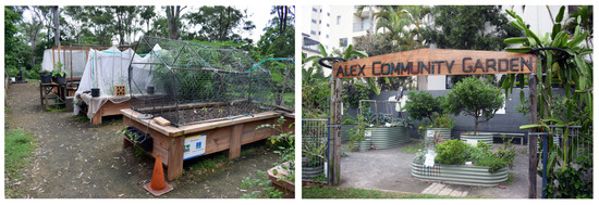 Examples of community gardens situated in Queensland that provide fresh food, social benefits, and health advantages to local residents: (left) Brisbane and (right) Alexandra Headland. (Images: Alessio Russo).