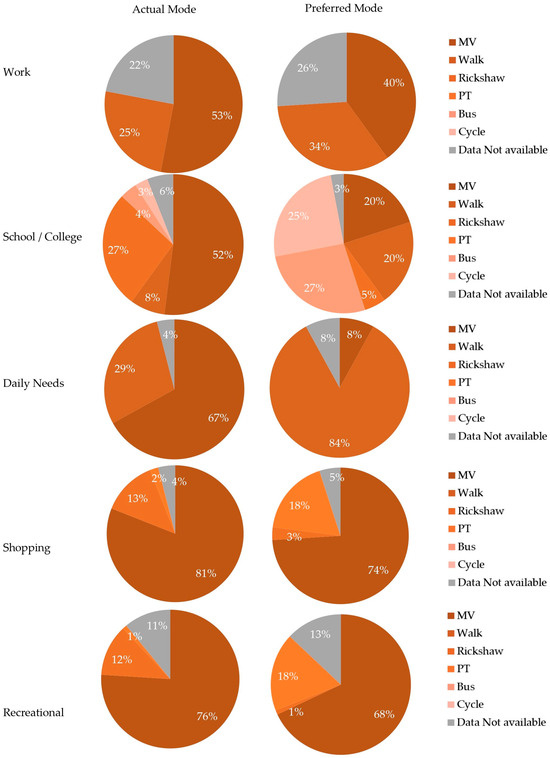 Actual and preferred modes in Karelibaug (MV—motor vehicle; PT—public transit).