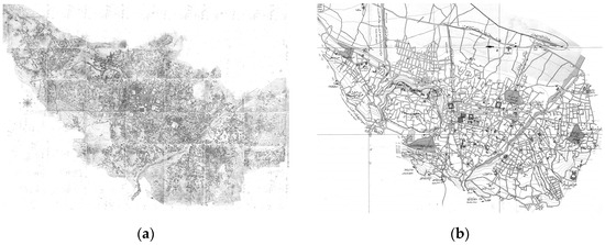 The historical maps of Bursa. (a) The 1862 map represents the traditional structure of the city. (b) The 1921 map represents the early urban modernization period.