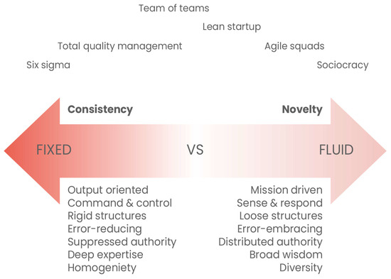 Figure 4. Parameters of multiple organizational futures. Source: [15] https://academy.nobl.io/the-futures-of-work-fixed-vs-fluid/ cited on 31 January 2024.
