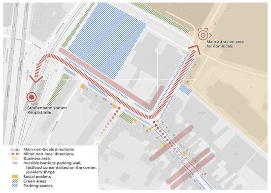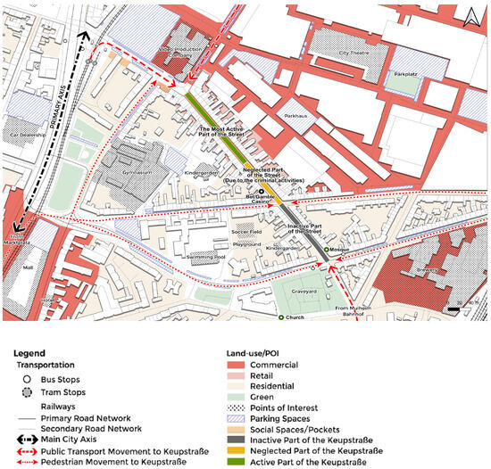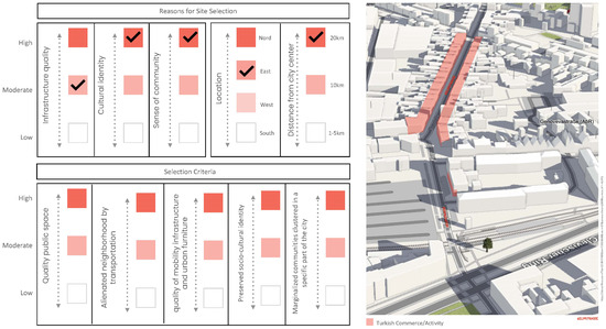 The selection criteria for the study area of Keuptstrasse are as follows, as shown in Figure 8: