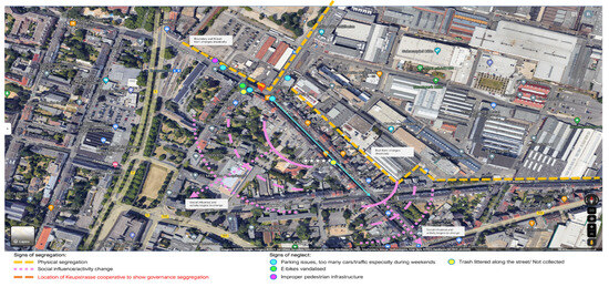 Figure 12. Mapping signs of segregation and neglect in the Keuptstrasse, Köln. Source: Authors, 2023.