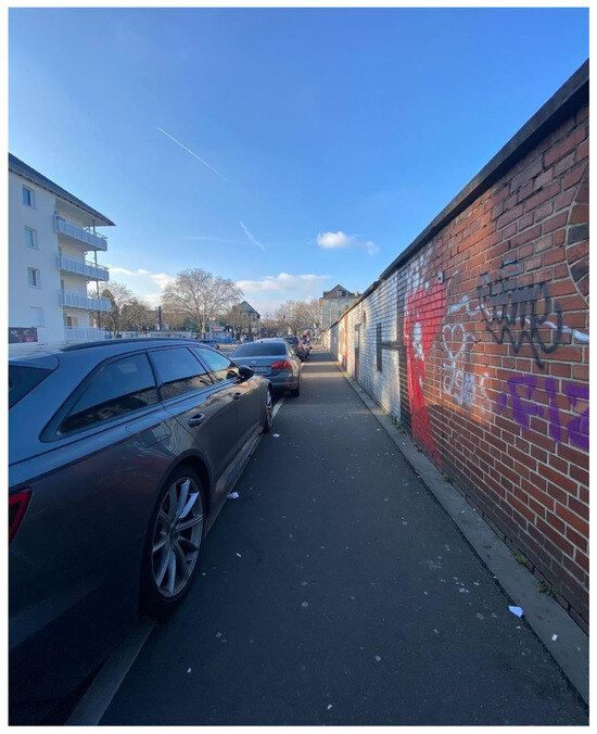 This segregation is also shown through the perception of safety. It became apparent throughout the survey that the residents, in accordance with their status, do not feel safe all the time as quoted by the interview: “There are always police officers around, but it doesn’t help”, said a 26-years-old Turkish woman who lives in the area. Regarding neglect and deteriorated conditions and a bad image, many residents have suffered this, declaring it was better before, but more and more migrants are sweeping into the area, which increased this image and this neglect (see Figure 12): “There is not a person which they can transparently discuss their problems,” quoted from a 41-year-old Turkish man residing in the area, and “Communication with authorities should be improved, feels like our voices are not heard,” quoted from a 52-year-old German woman living in the area. Further, they highlighted the bad conditions of the street by the increase in different migrants. Public and community services were also a signpost of the survey and infrastructure that the area suffered from: “Public transport, health care facilities are missing in addition to the banking operations compared to the other side of the Rhine River”. A feeling of neglect by the government was visible through the survey, as many believe that the city has “given up” on the neighborhood and that it has been forgotten. One of the participants referred to the two-meter-high parking lot wall as resembling the Berlin Wall and provided insights about the segregation in Third Places on the other side of the area (see Figure 13). As a result, many respondents emphasized the need for urgent action to integrate, invest in, and maintain the neighborhood, as well as to find solutions for the infrastructure and security problems.