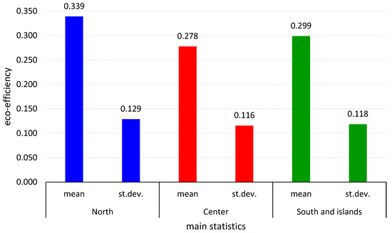 Main statistics (mean and standard deviation) of the eco-efficiency in the three macro-areas.