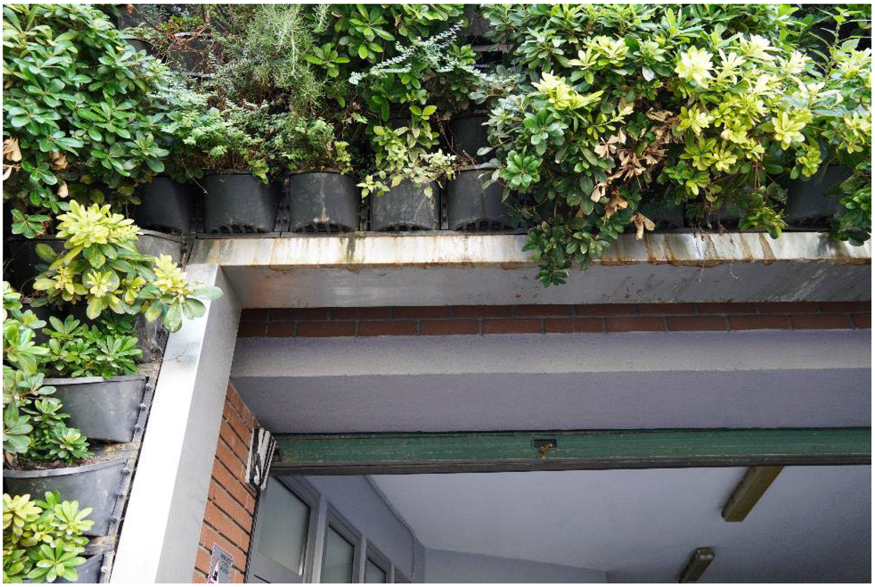 - Living walls, also known as green walls or vertical gardens, are more complex systems constructed using modular panels or continuous layers containing soil or artificial growing mediums [37]. They are further subdivided into modular systems (pre-vegetated panels containing soil or other growing mediums), continuous systems (based on a single support structure often using a geotextile felt system that also acts as the growing medium), and linear systems. The latter are a type of living wall systems that are characterized by the use of planter boxes, arranged one above the other in a linear fashion [29].
