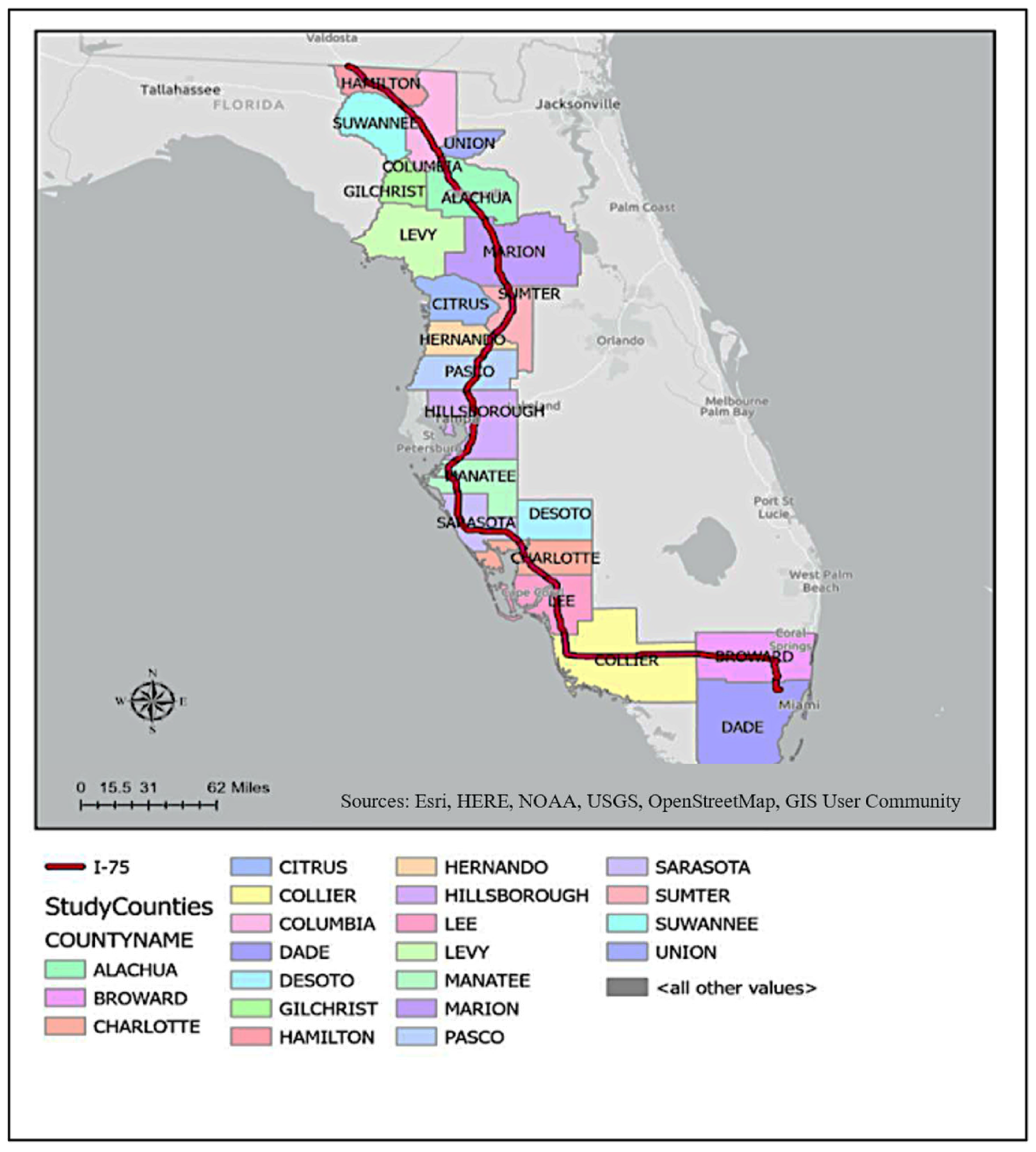 - Florida Transportation Plan Policy Element Strategic Intermodal System (SIS) Policy Plan. Available online: www.floridatransportationplan.com (accessed on 23 July 2025).