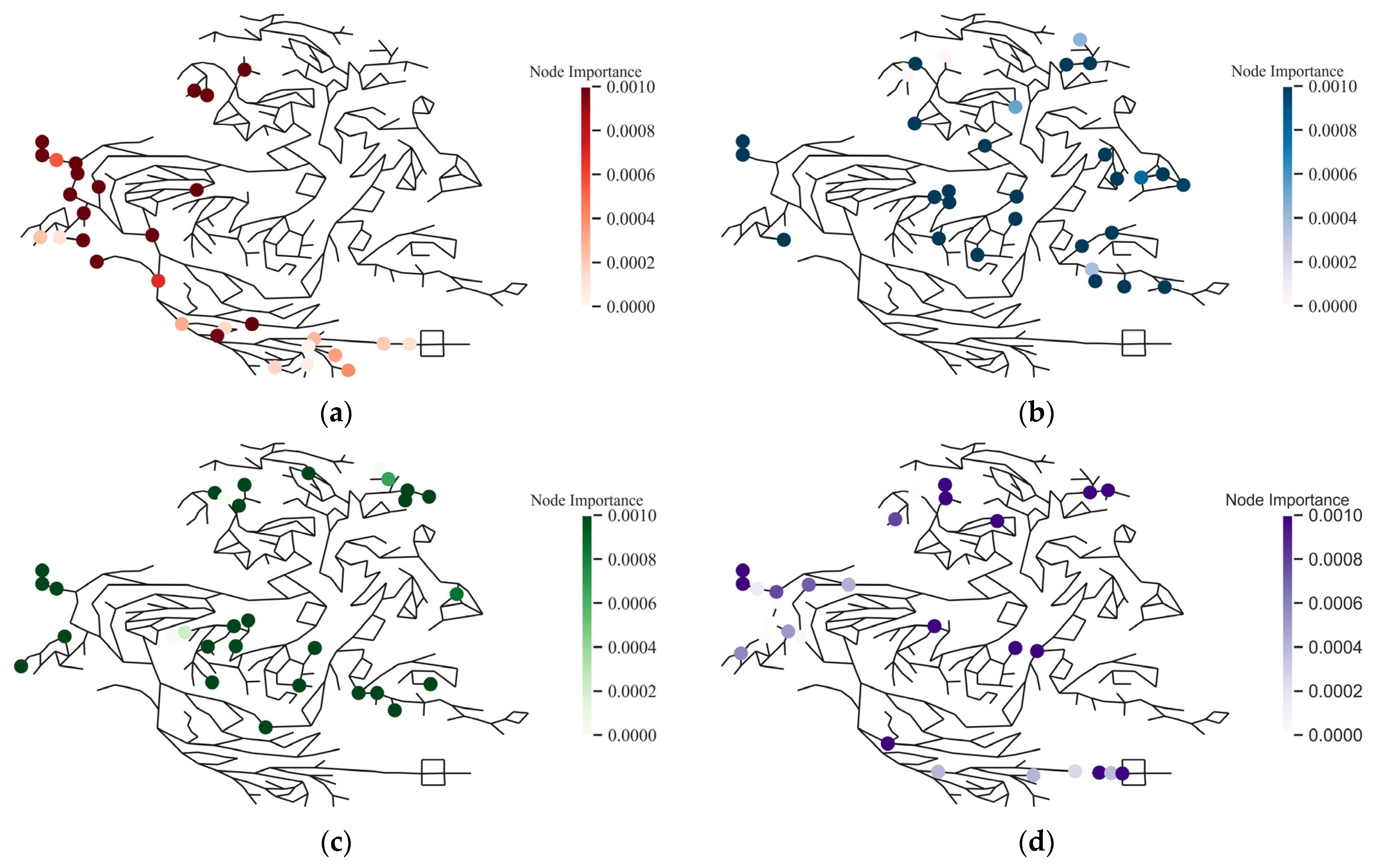 - Salem, A.K.; Abokifa, A.A. Optimal Sensor Placement in Water Distribution Networks Using Dynamic Prediction Graph Neural Networks. Eng. Proc. 2024, 69, 171. [Google Scholar] [CrossRef]