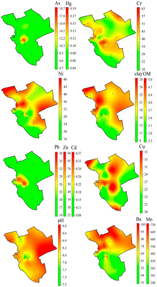 - Saha, A.; Gupta, B.S.; Patidar, S.; Martinez-Villegas, N. Spatial Distribution and Source Identification of Metal Contaminants in the Surface Soil of Matehuala, Mexico Based on Positive Matrix Factorization Model and GIS Techniques. Front. Soil Sci. 2022, 2, 1041377. [Google Scholar] [CrossRef]
