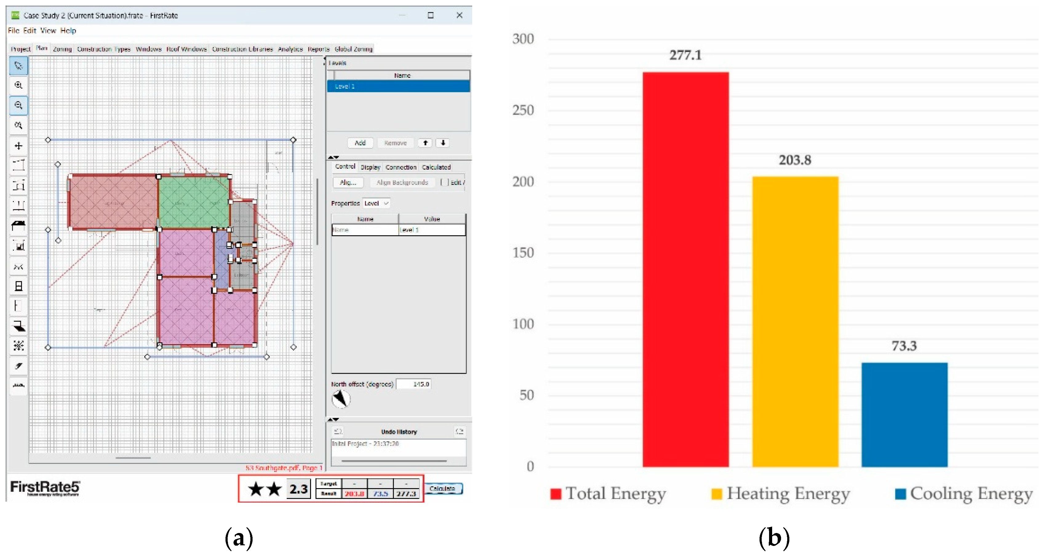 Window–Wall Ratio | South–east = 8.4 m2, south–west = 0.7 m2, north–west = 5.1 m2 and north–east = 1.3 m2 |