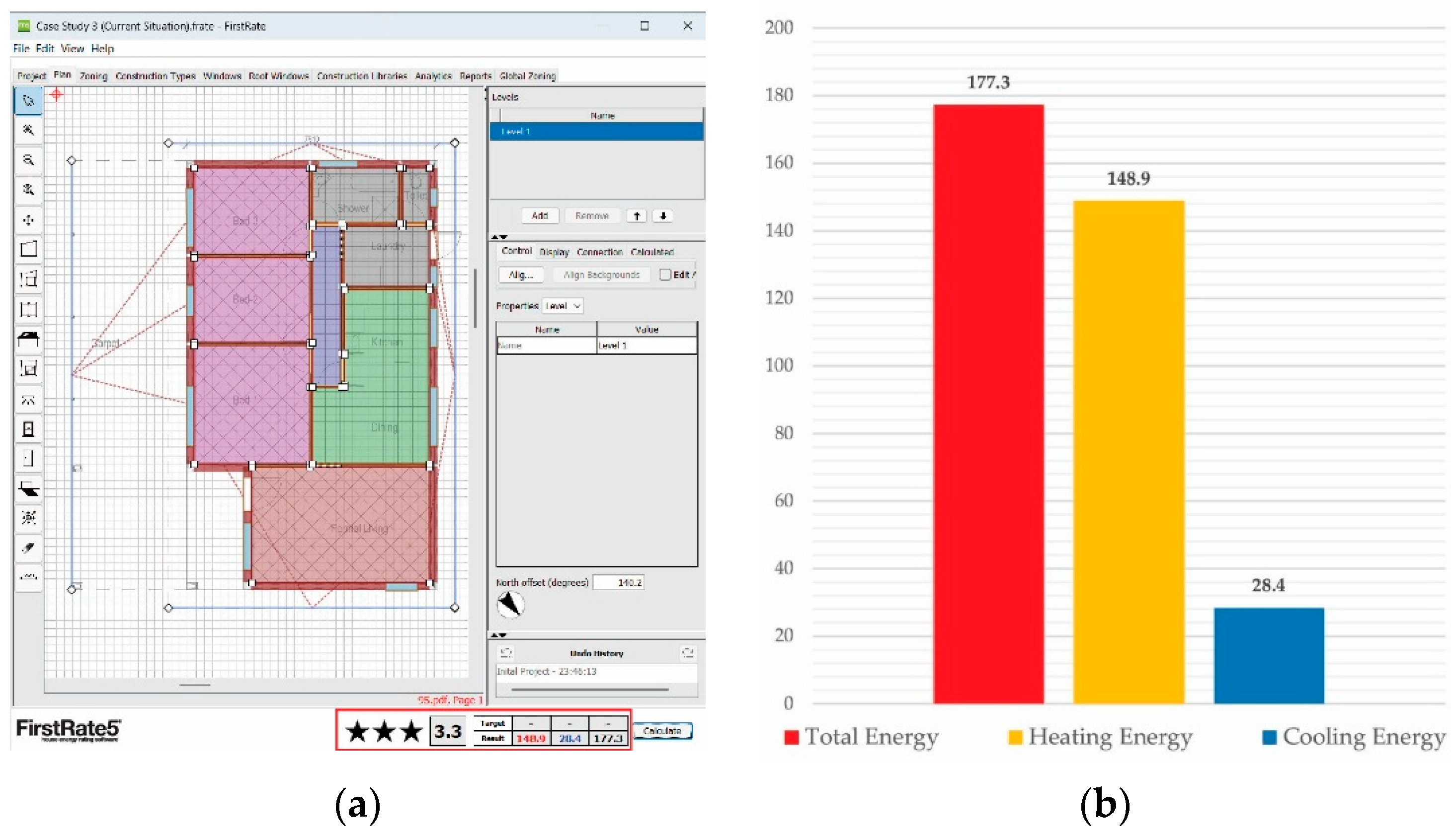 Roof and Ceiling | Yes | Total ceiling area (84.7 m2) insulated with 140 mm high-performance ceiling insulation batts R5. |