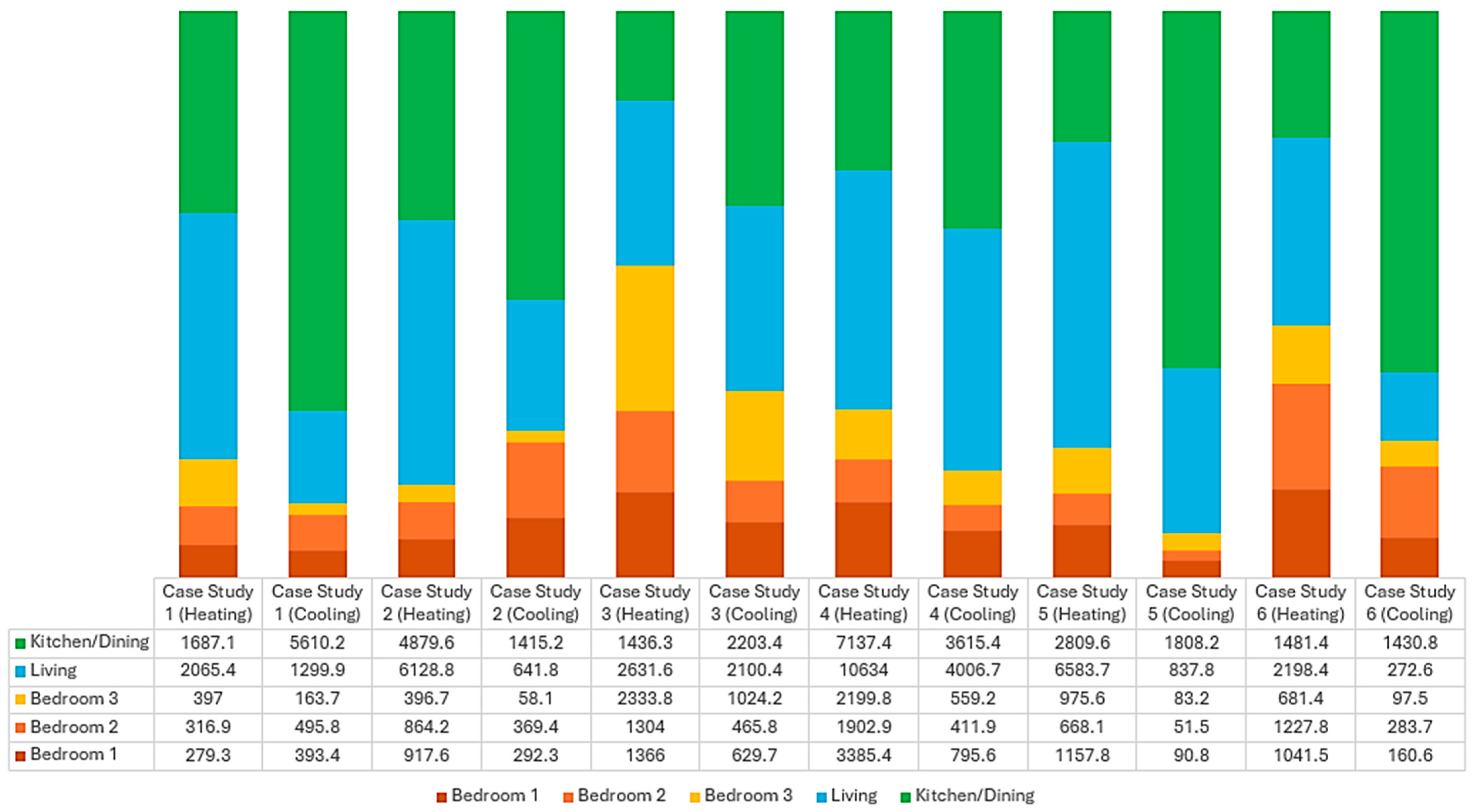 4.2. Current Heating and Cooling Energy Use of the Case Study Buildings