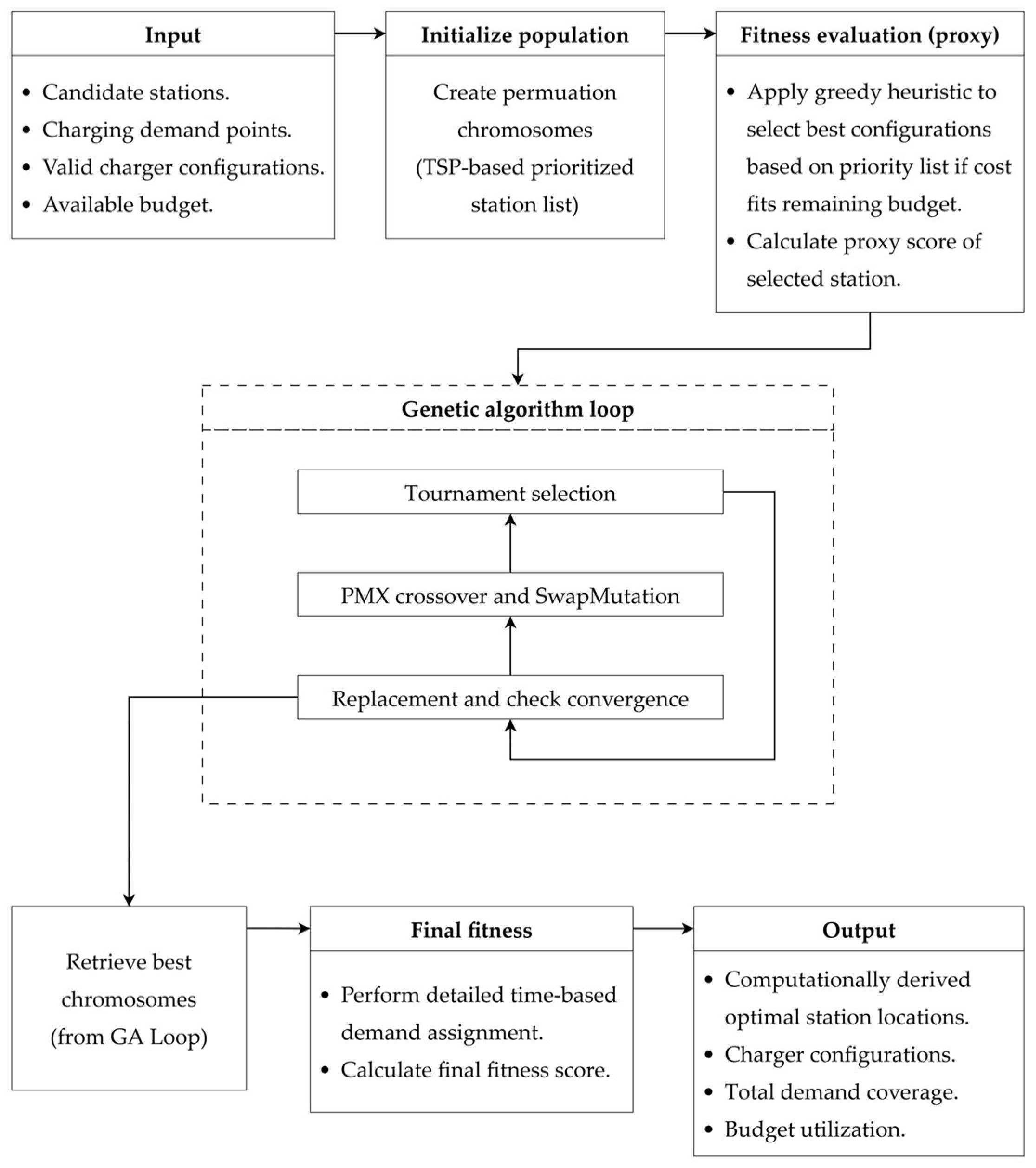- Kumar, B.A.; Jyothi, B.; Singh, A.R.; Bajaj, M.; Rathore, R.S.; Tuka, M.B. Hybrid Genetic Algorithm-Simulated Annealing Based Electric Vehicle Charging Station Placement for Optimizing Distribution Network Resilience. Sci. Rep. 2024, 14, 7637. [Google Scholar] [CrossRef]