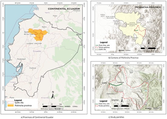This research focuses on the rural parishes of Cumbayá, Tumbaco, Puembo, Pifo, and Tababela, located within the Metropolitan District of Quito (DMQ), Ecuador. The study area covers 397.94 km2 and concentrates approximately 1.02% of the national population.