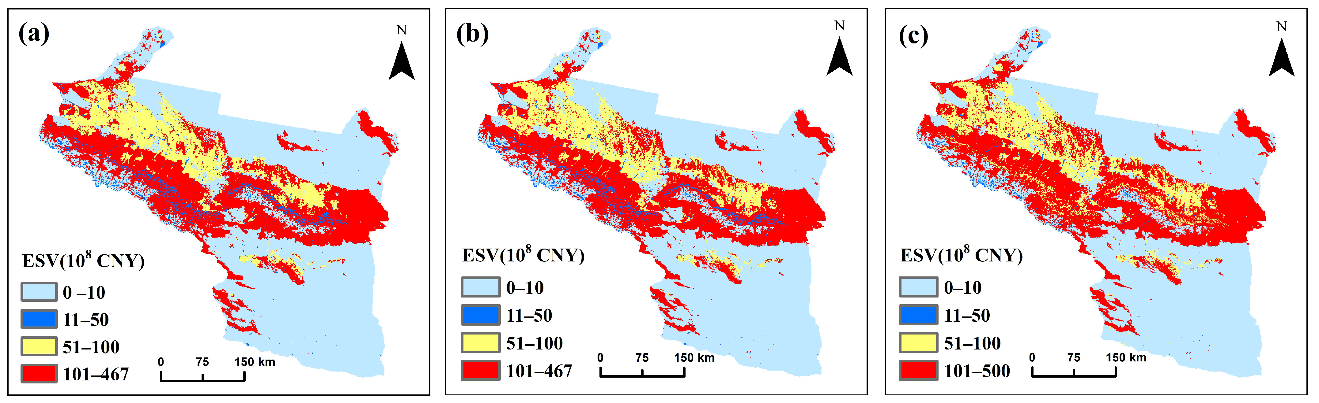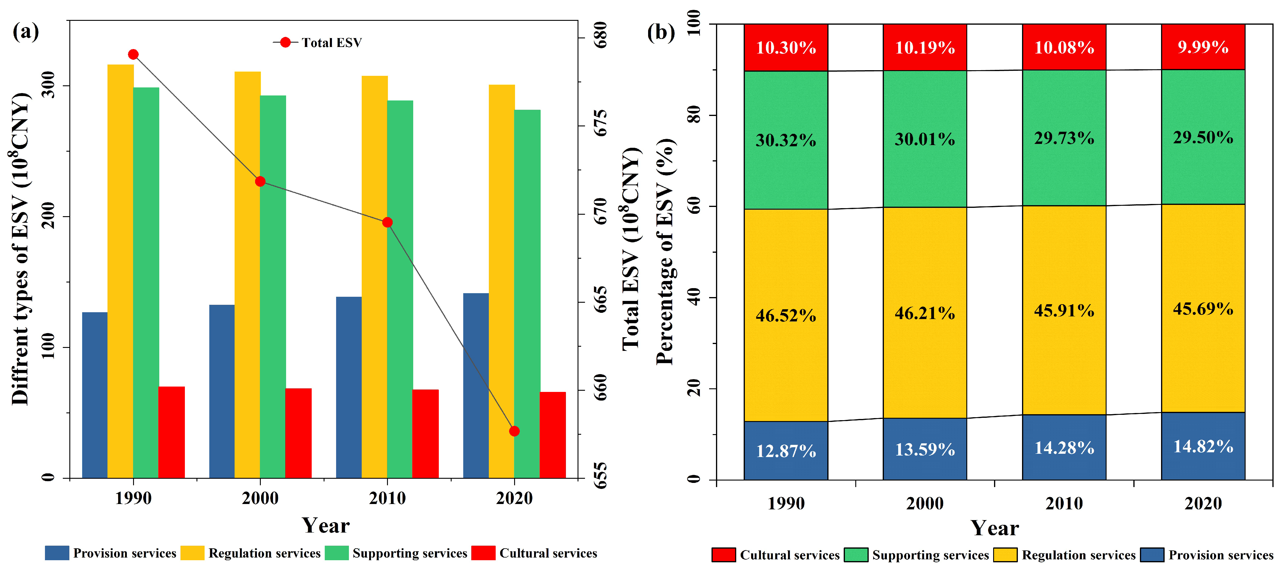 ESV | ESV in 2030 (108 CNY) | ESV Change in 2020–2030 (108 CNY) | ||||
