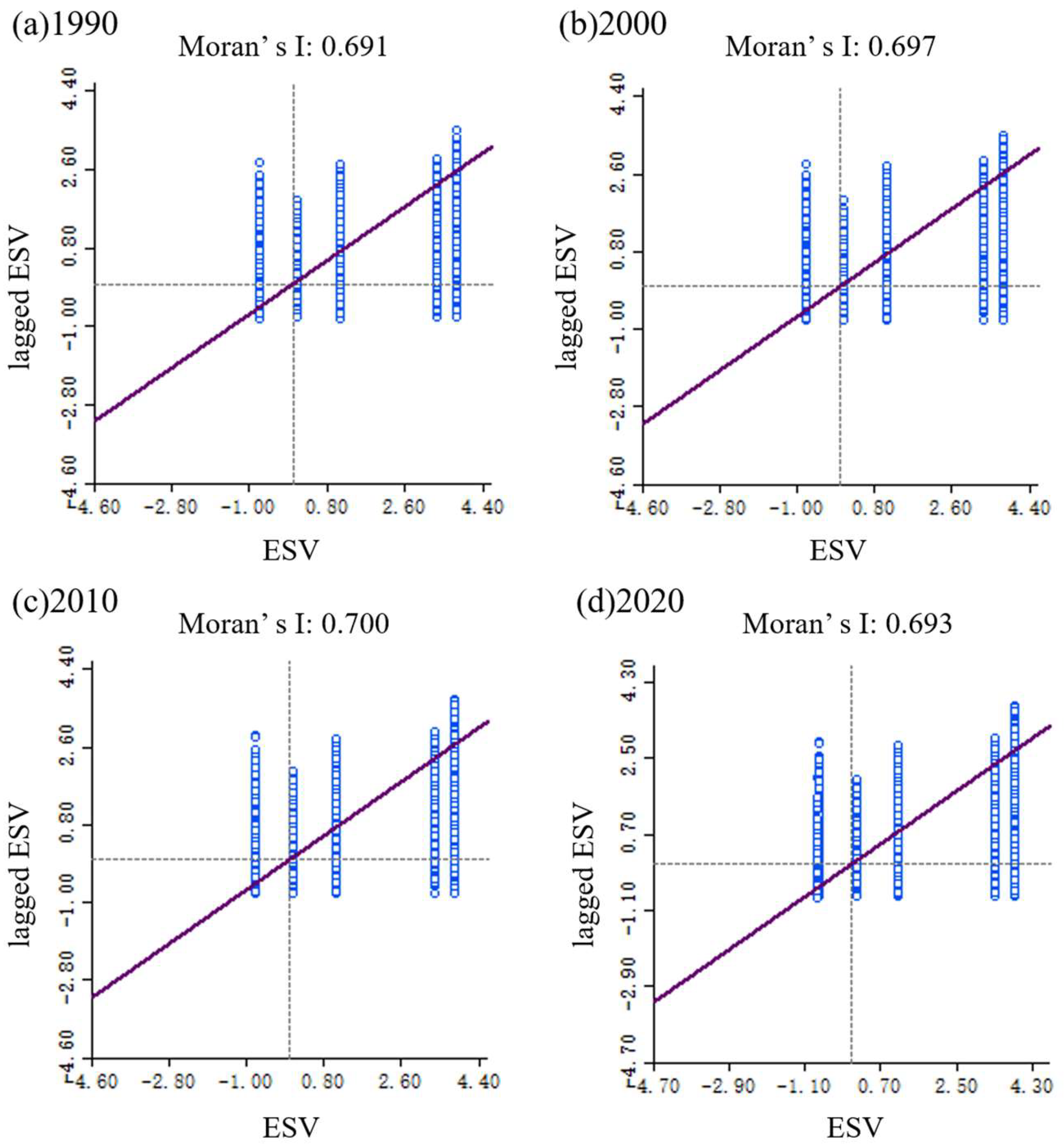 3.2. Spatial-Temporal Changes in ESV