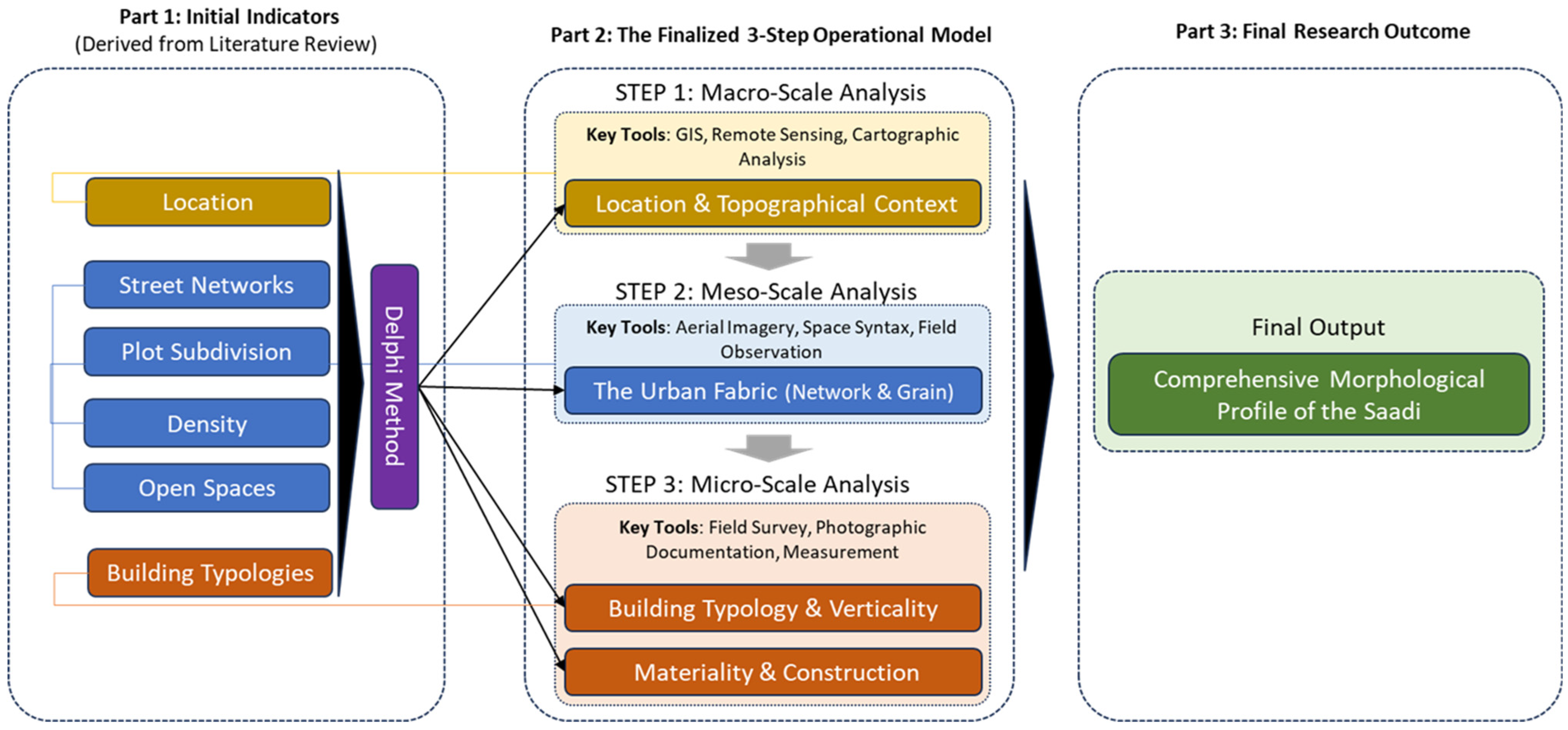 This research employs a multi-stage, sequential methodology designed to develop, validate, and apply a new framework for the morphological analysis of informal settlements. The process is structured to ensure a robust and replicable path from theoretical model-building to empirical application, as visually summarized in