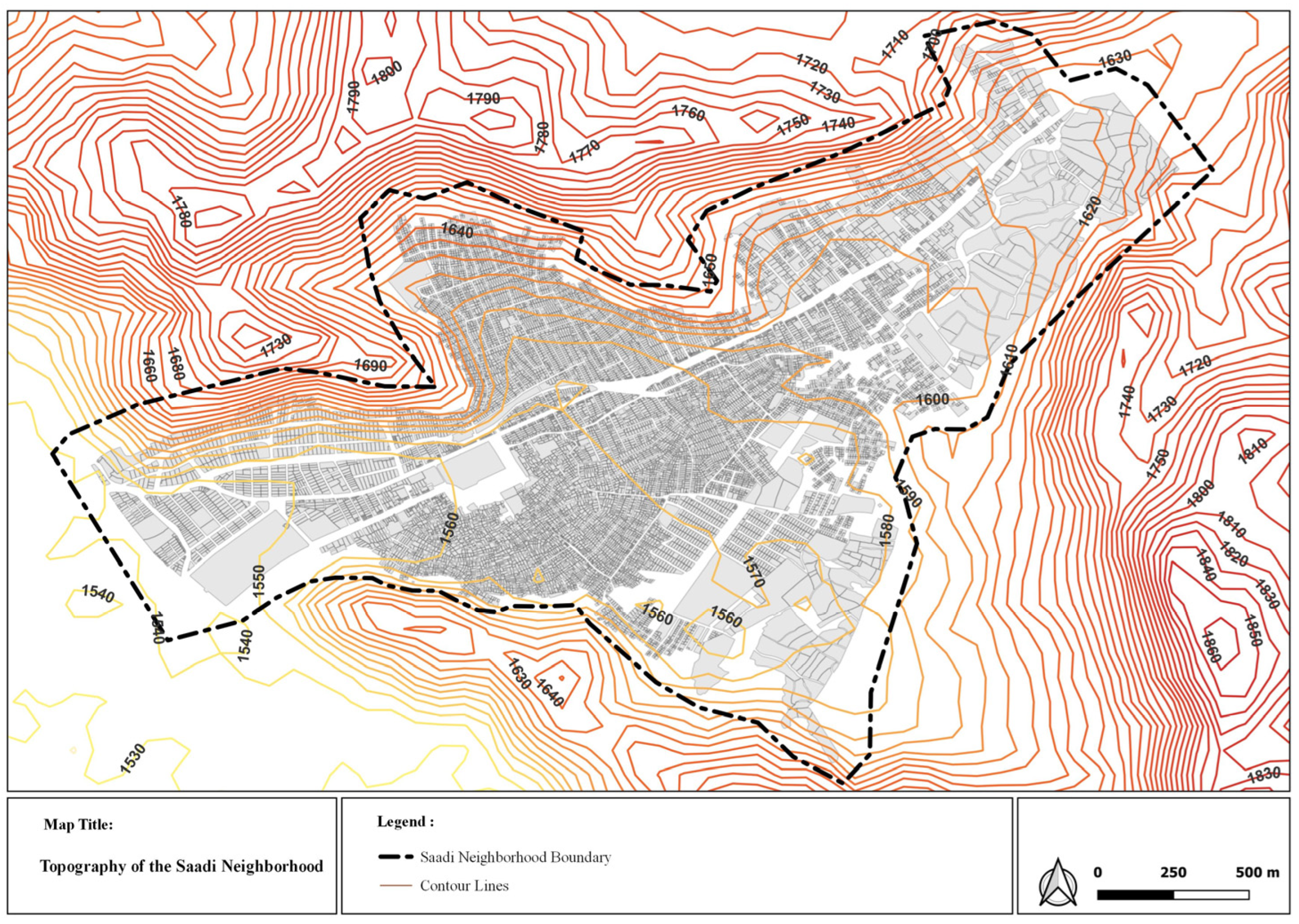 Figure 2), serves as a representative example of an informal settlement that has undergone decades of incremental growth and consolidation within a challenging topographical context. Historically an ancient settlement, its contemporary form is a product of rapid, unplanned expansion over the last half-century, driven by rural–urban migration. According to official statistics, the area has a population exceeding 51,000 inhabitants, with foundational studies indicating that up to 74% of housing units were constructed without official permits and 84% of residents lack formal deeds of ownership [