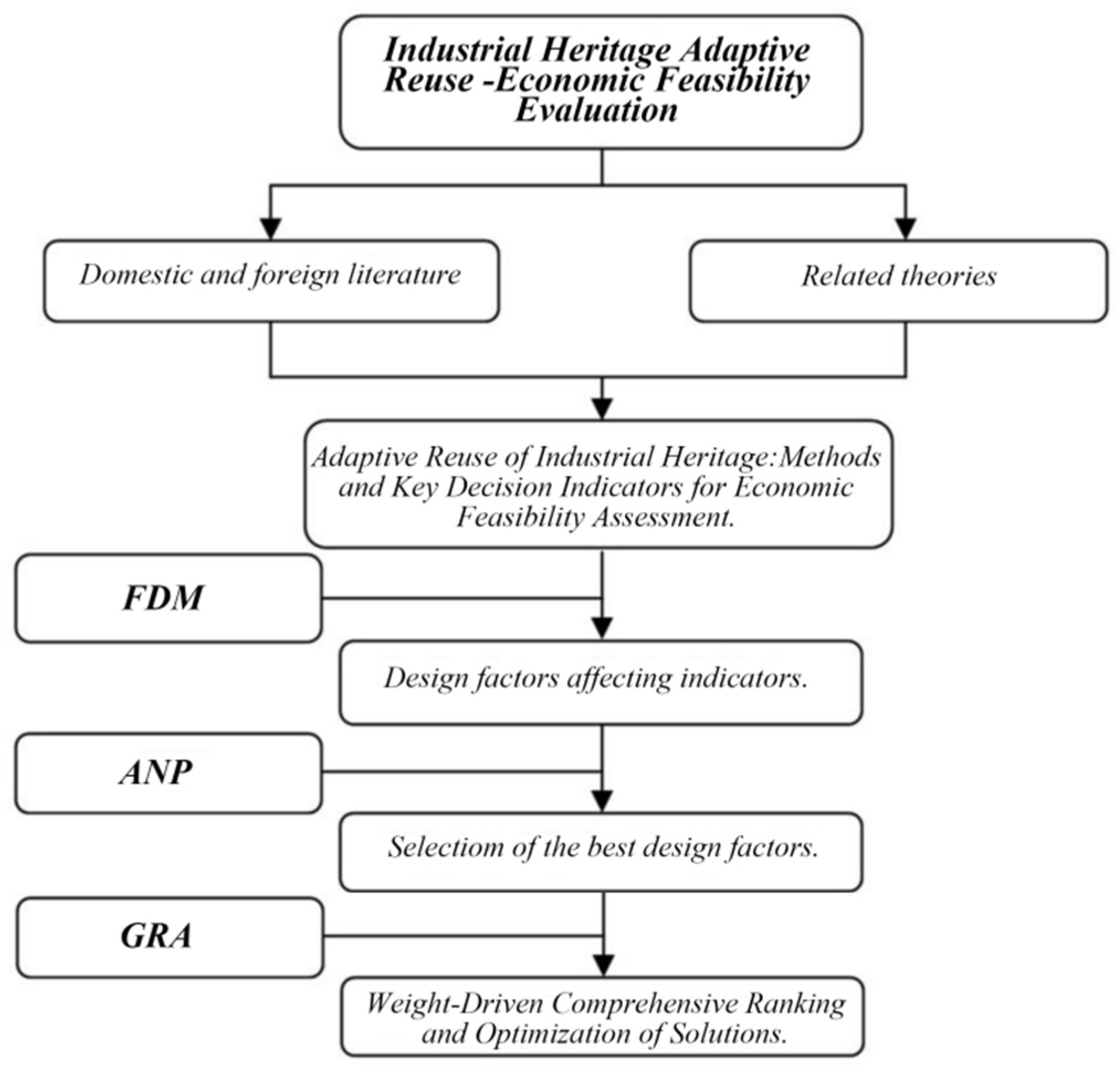 In summary, this study aims to select an appropriate multi-attribute decision-making model to evaluate the economic feasibility of reusing industrial heritage buildings in the context of urban renewal, and to reveal the interplay between their reuse and regional development strategies. This model will balance economic requirements with community needs, addressing issues of resource reallocation and heritage regeneration in the transformation of industrial cities. The research objective is to establish an evaluation system that quantifies the economic benefits of industrial heritage reuse, thereby enhancing public acceptance and decision-making rationality. The research design involves: first, compiling literature and identifying key economic indicators through the Fuzzy Delphi Method (FDM); second, using Analytic Network Process (ANP) to calculate indicator weights and prioritize different reuse strategies. This study will use Guangzhou’s iconic industrial heritage site, Guangzhou Steel New City, as a case study to empirically analyze its economic viability and propose strategic recommendations.