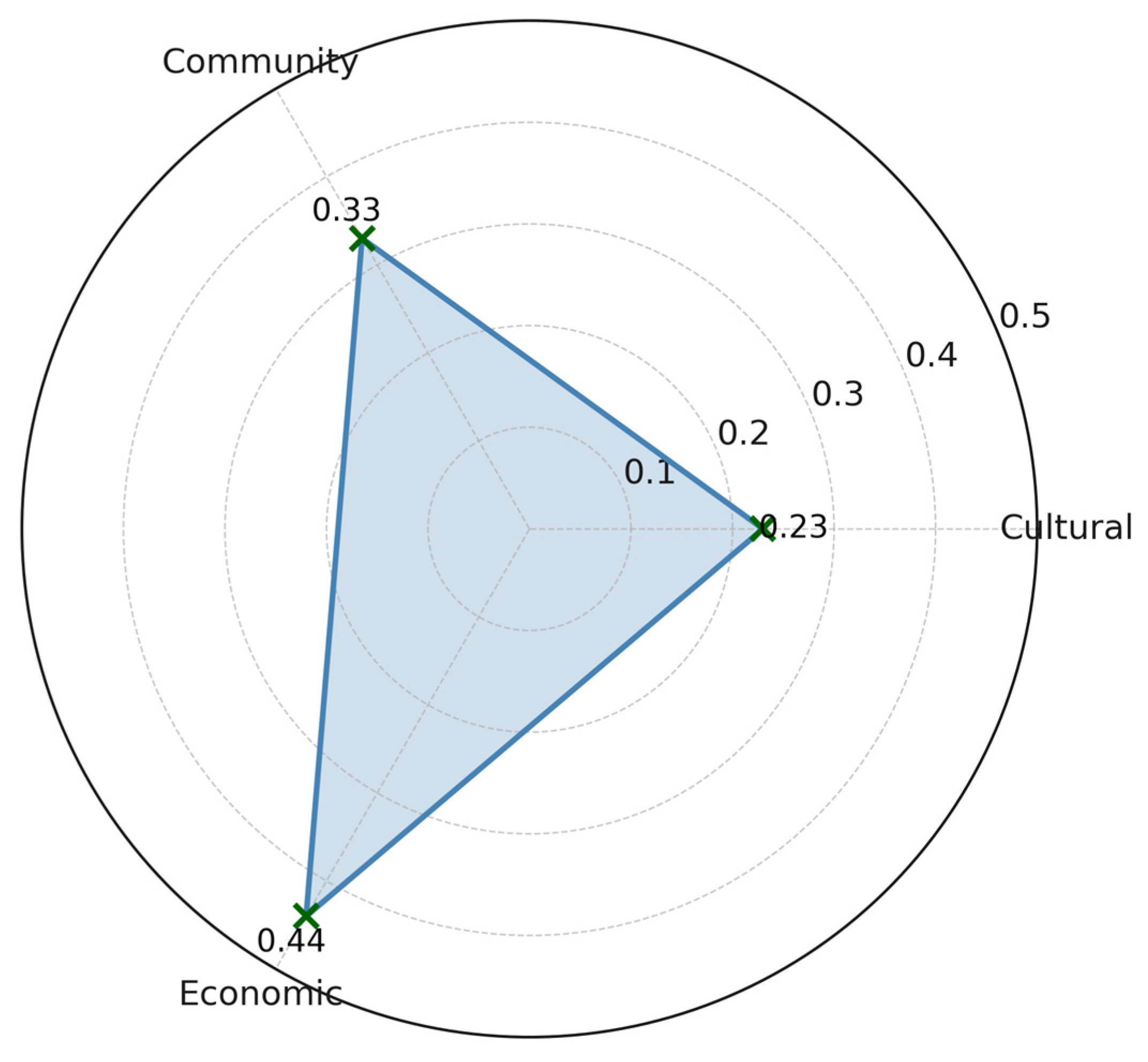 24]. Therefore, when assessing the economic viability of industrial heritage, cultural industries should be considered to prevent the capitalization of culture from undermining social inclusion and long-term resilience. In other words, economic viability is not solely determined by investment returns, but is supported by the long-term interaction between cultural locality and social participation. These factors, by shaping local resilience and sustained innovation, constitute the long-term economic foundation of urban renewal.
