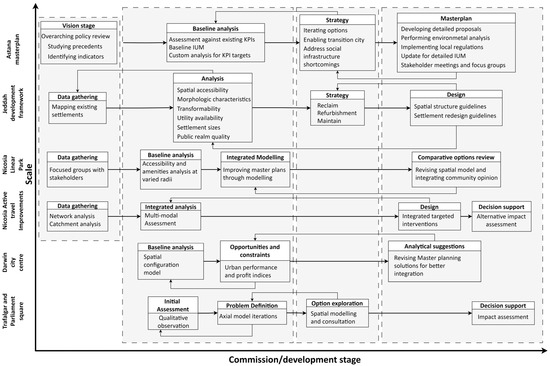 No specific datasets were used in this study. The project documentation reviewed was partly publicly available and partly provided through the TWIN2EXPAND project consortium. The publicly available project materials can be accessed at https://spacesyntax.com/cities-regions/cities-regions-landing-page/, accessed on 1 September 2024. Detailed documentation for projects that are not publicly accessible cannot be provided openly owing to client confidentiality agreements, but can be made available from the authors upon reasonable requests.
