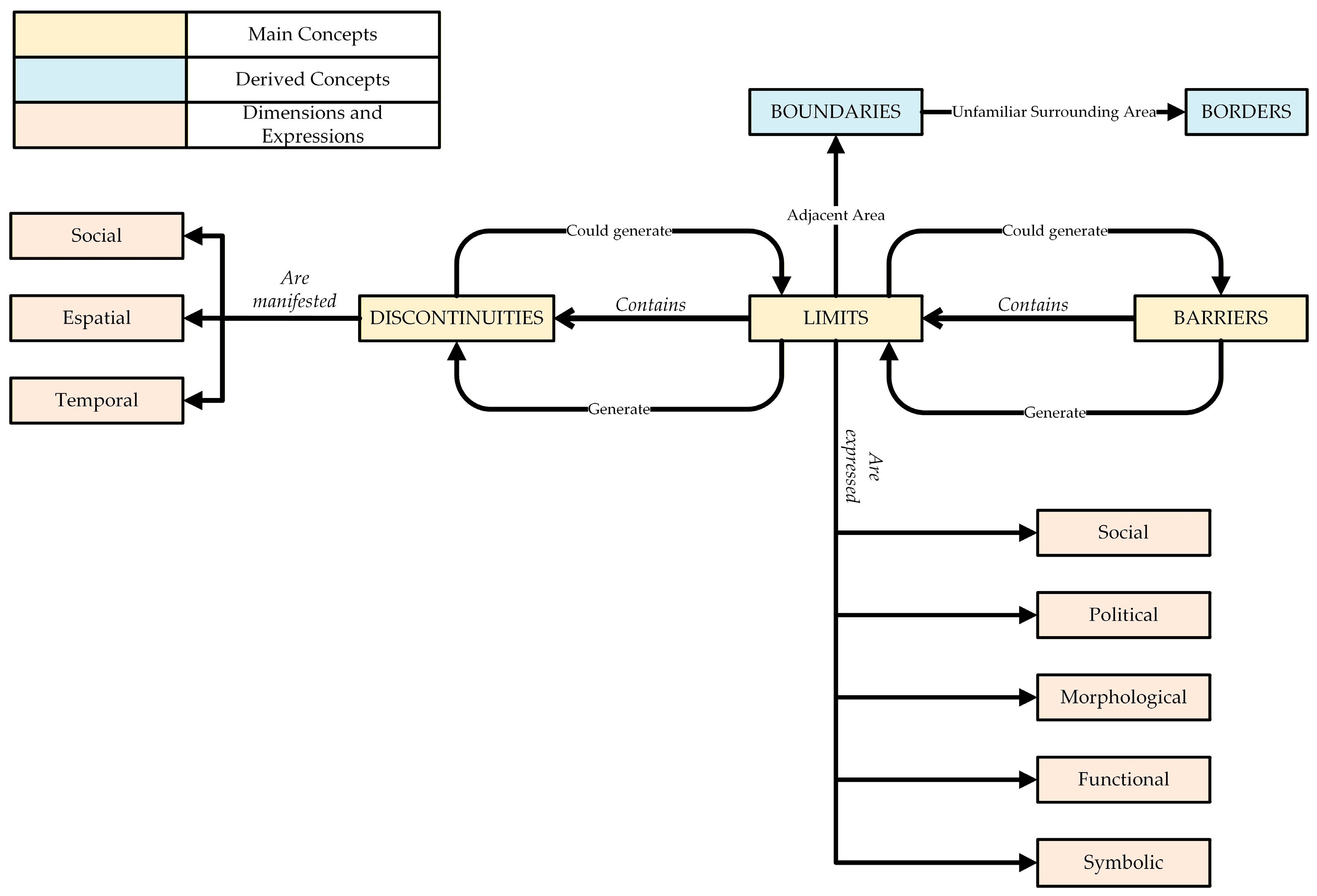 3.3. Characterization of Limits and Their Expression in the City of Lleida