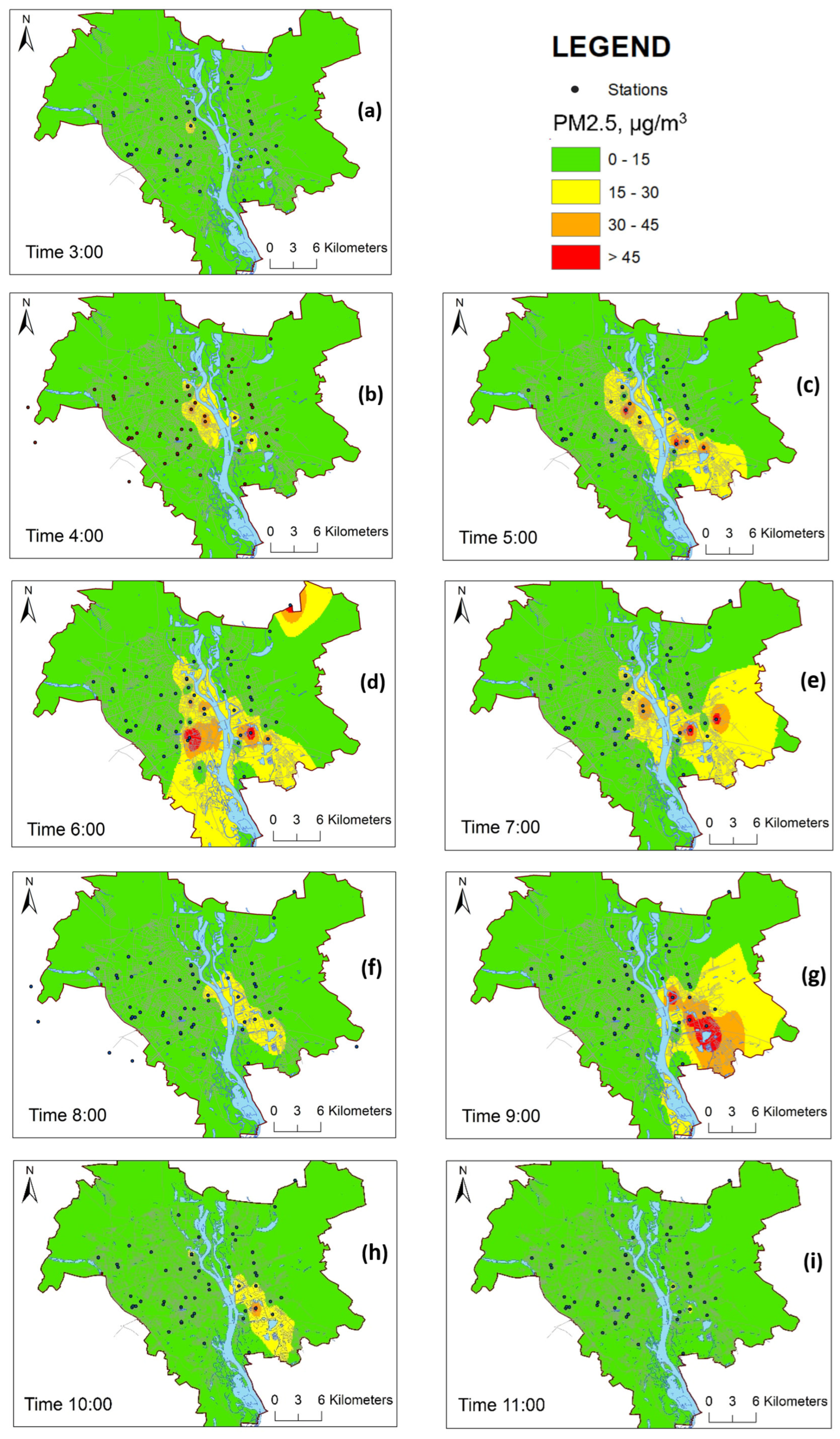 2.2. Air Quality Monitoring Methodology and PM2.5 Mapping