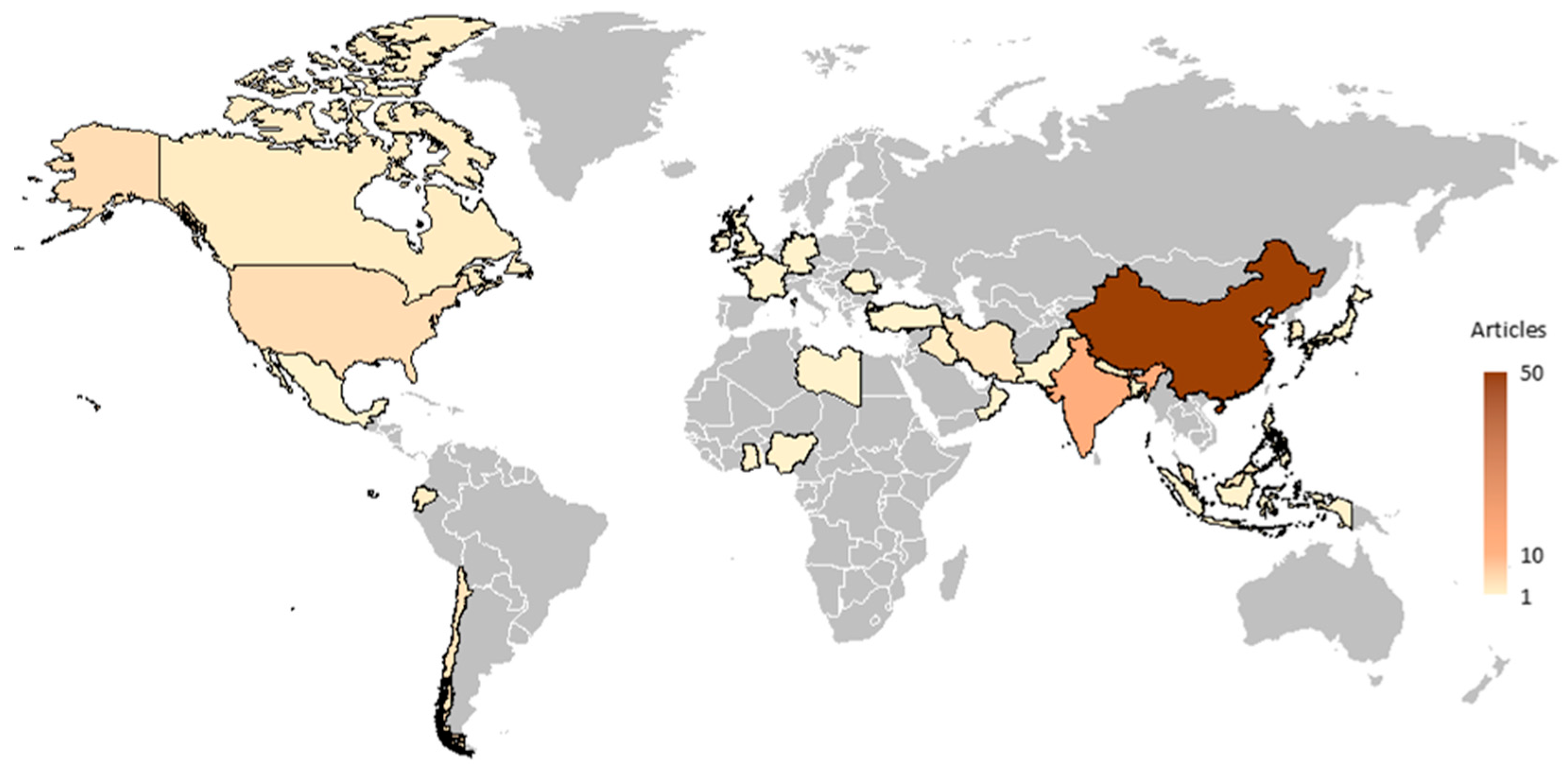 Figure 4. Distribution of collected articles based on the origin country of the case study.