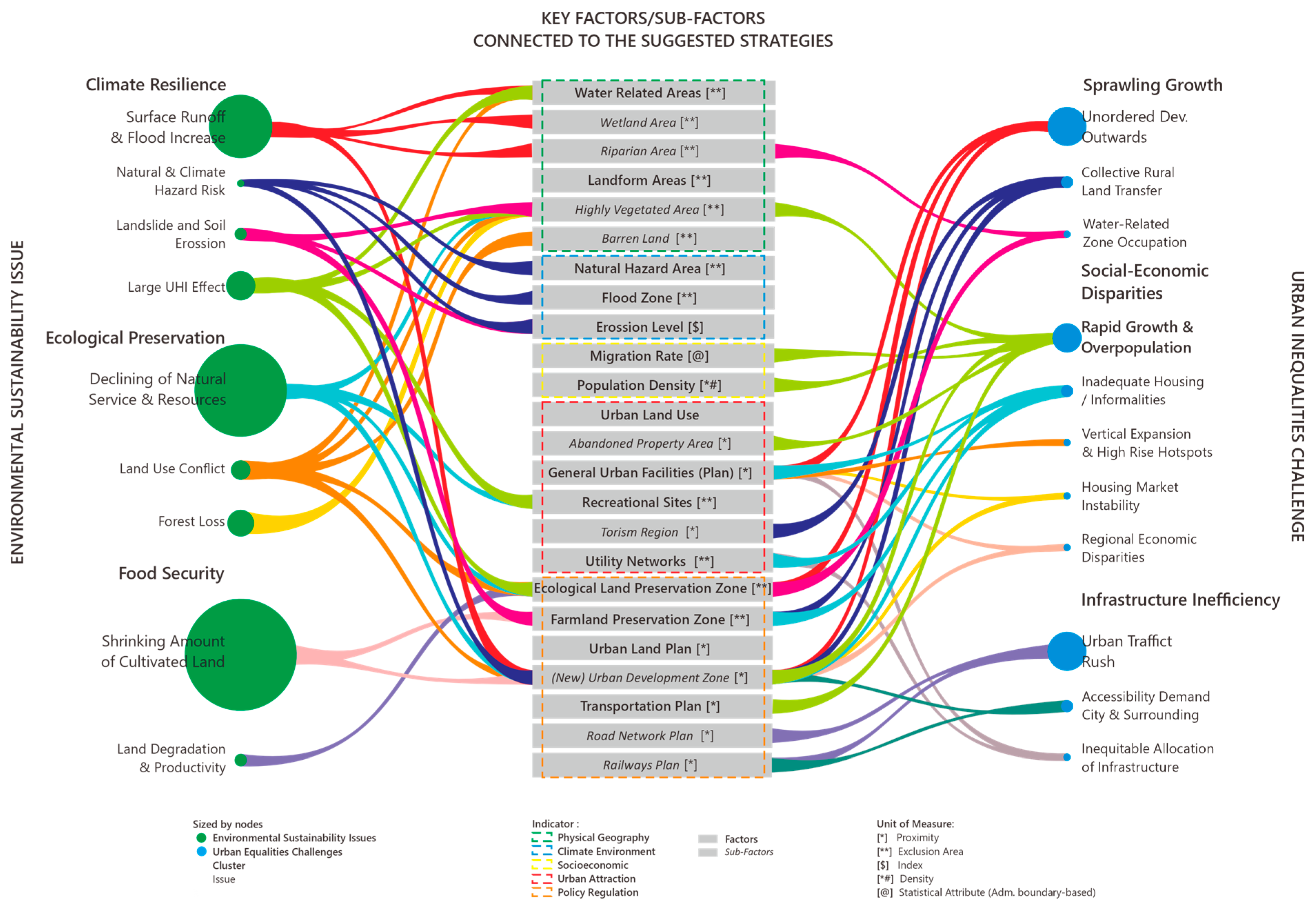 Figure 12. Urban issues found in the article and their strategies’ connection to the LUC Indicators.