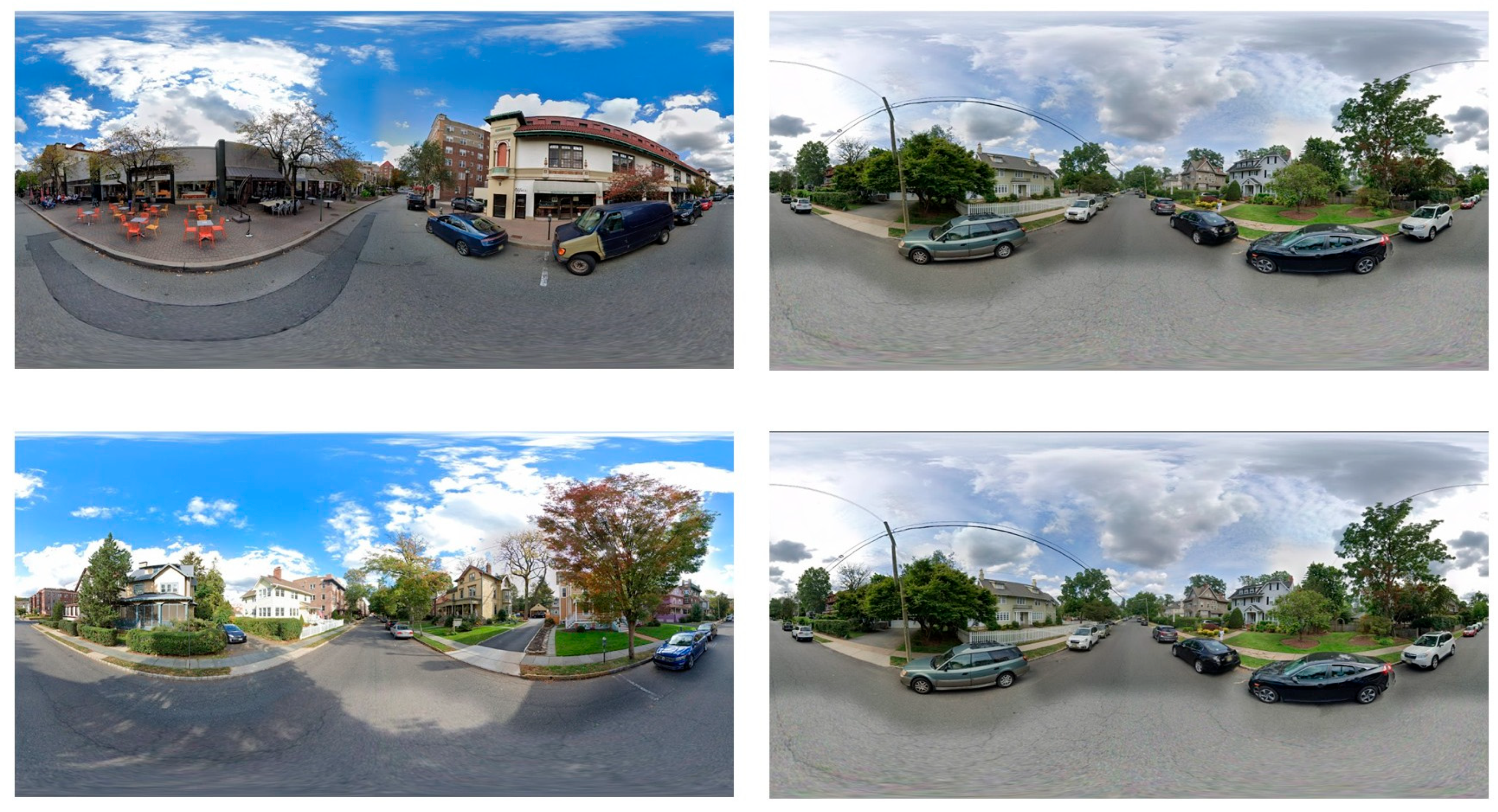The current study is limited in scale as our two study sites are both located in the state of New Jersey in the United States. Although the two sites have different types of neighborhoods, their differences do not capture a wide range of environmental settings. Future studies could include more environmental types. Furthermore, our image segmentation approaches were based on well-established algorithms and existing training datasets. Limited by the scale of our study, we did not use a customized training dataset. Future studies at larger scales could collect a set of street view images to be annotated manually for such purposes. Our study also found the large areas of sky and roads in GSV images affect their concordances with aerial images. In future studies, preprocessing strategies could be considered before segmenting the GSV images, such as truncating the images to leave out the top and bottom quarters (or another portion, worth experimenting to find out) to better match a person’s visual field.