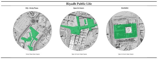 Accordingly, three projects were chosen representing varying functions, openness levels, and urban contexts, collectively illustrating Riyadh’s open-space architectural evolution (Figure 2).