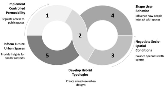 The study makes three key theoretical contributions to understanding the production of public space. First, it extends Lefebvre’s framework by demonstrating how architectural form mediates spatial production in contexts shaped by both state ideologies and cultural and religious norms. Second, it challenges Western-centric public space models by validating “controlled permeability” and “hybrid typologies” as culturally attuned alternatives to plaza-based spontaneity (Figure 15). Third, it advances relational urbanism theory by showing how openness operates as a dynamic condition negotiated through design typologies, programming strategies, and evolving user behaviors rather than as a fixed physical property. These insights offer a transferable framework for analyzing urban transformation in Gulf cities, Islamic contexts, and semi-authoritarian settings, navigating similar tensions between modernization and cultural continuity. The research ultimately reveals how seemingly modest architectural interventions can cumulatively reshape a city’s spatial imagination while maintaining cultural authenticity.