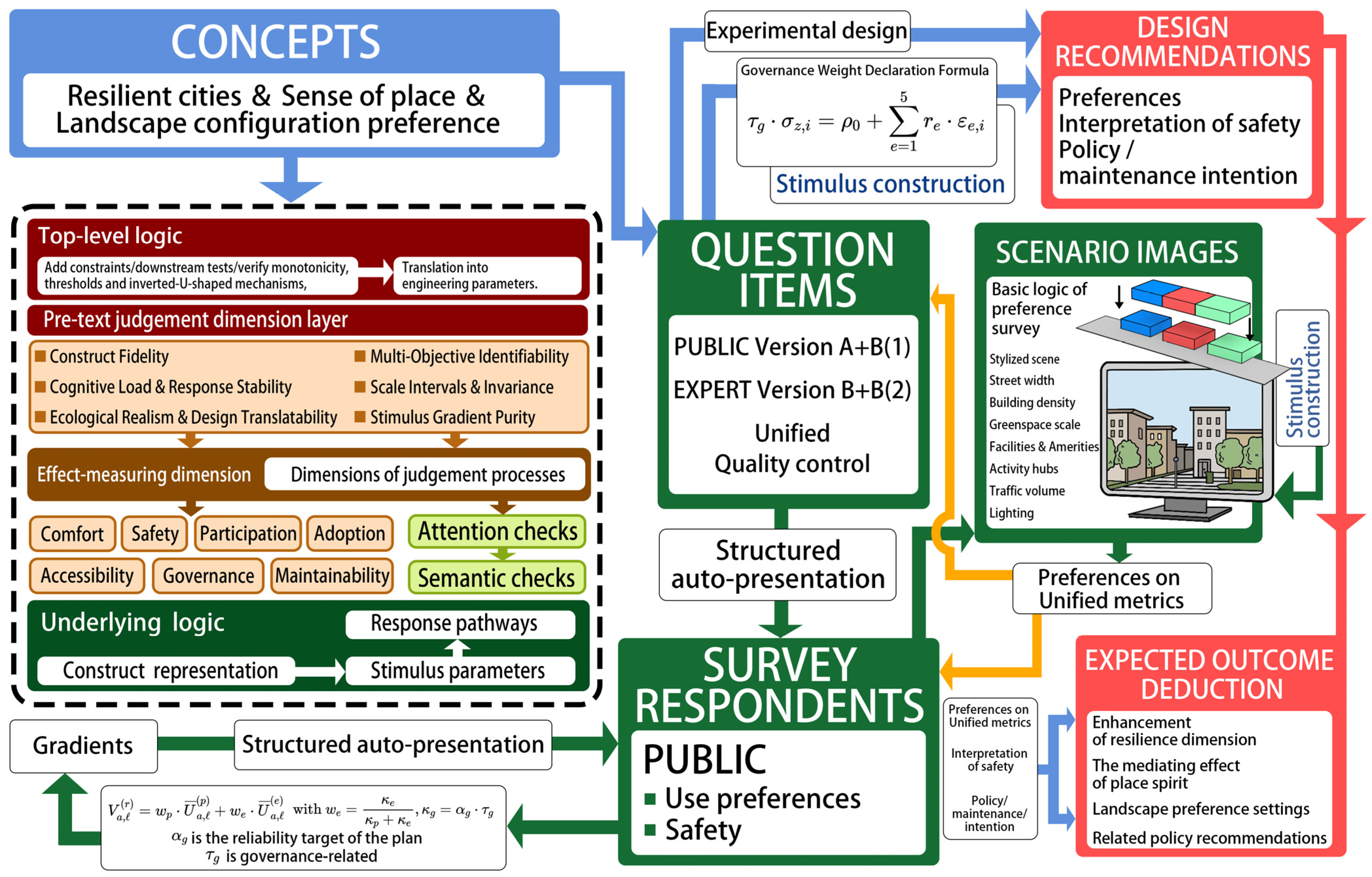 Wang J, Song P, Li Y, Zhang Y, Wu T, Zhou B. Translating Urban Resilience into Deployable Streetscapes: A Sense-of-Place–Mediated Measurement–Choice Framework with Threshold Identification. Urban Science. 2025; 9(12):501. https://doi.org/10.3390/urbansci9120501