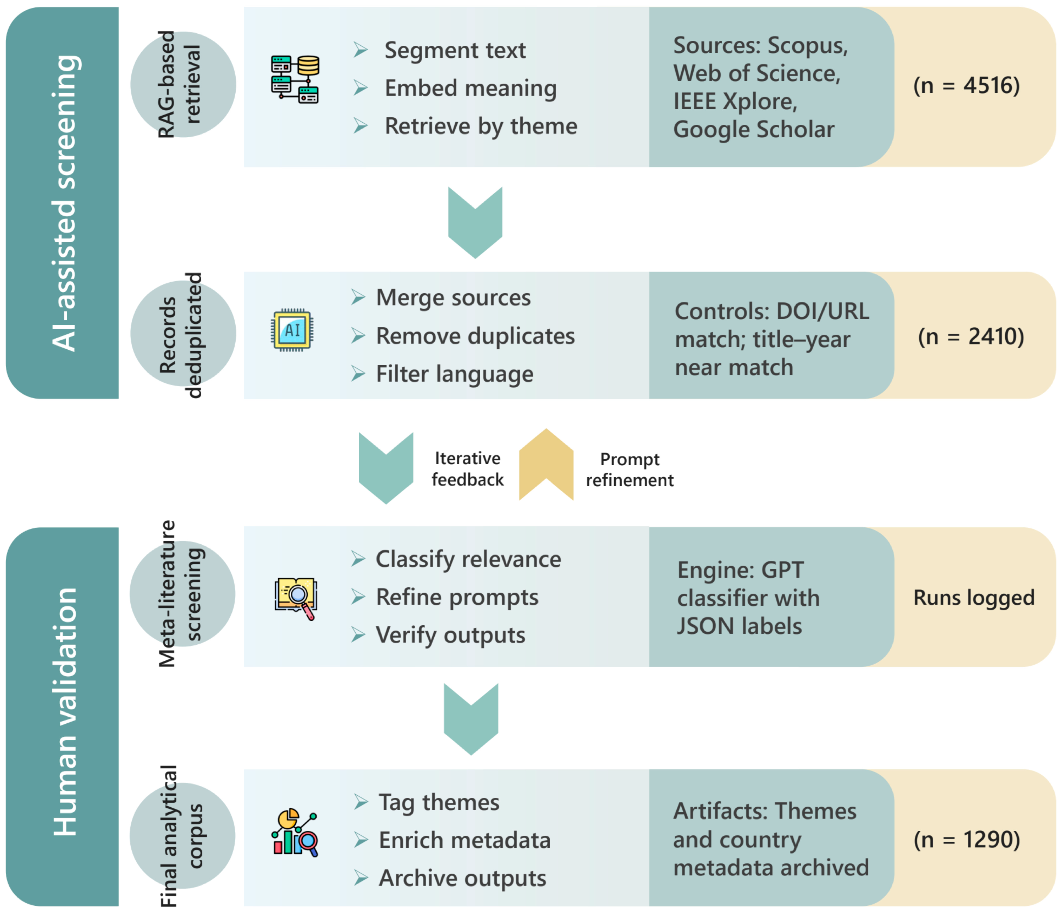 2.3. AI-Assisted Screening and Retrieval-Augmented Synthesis