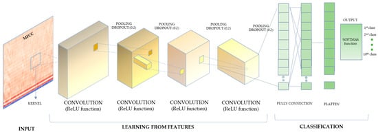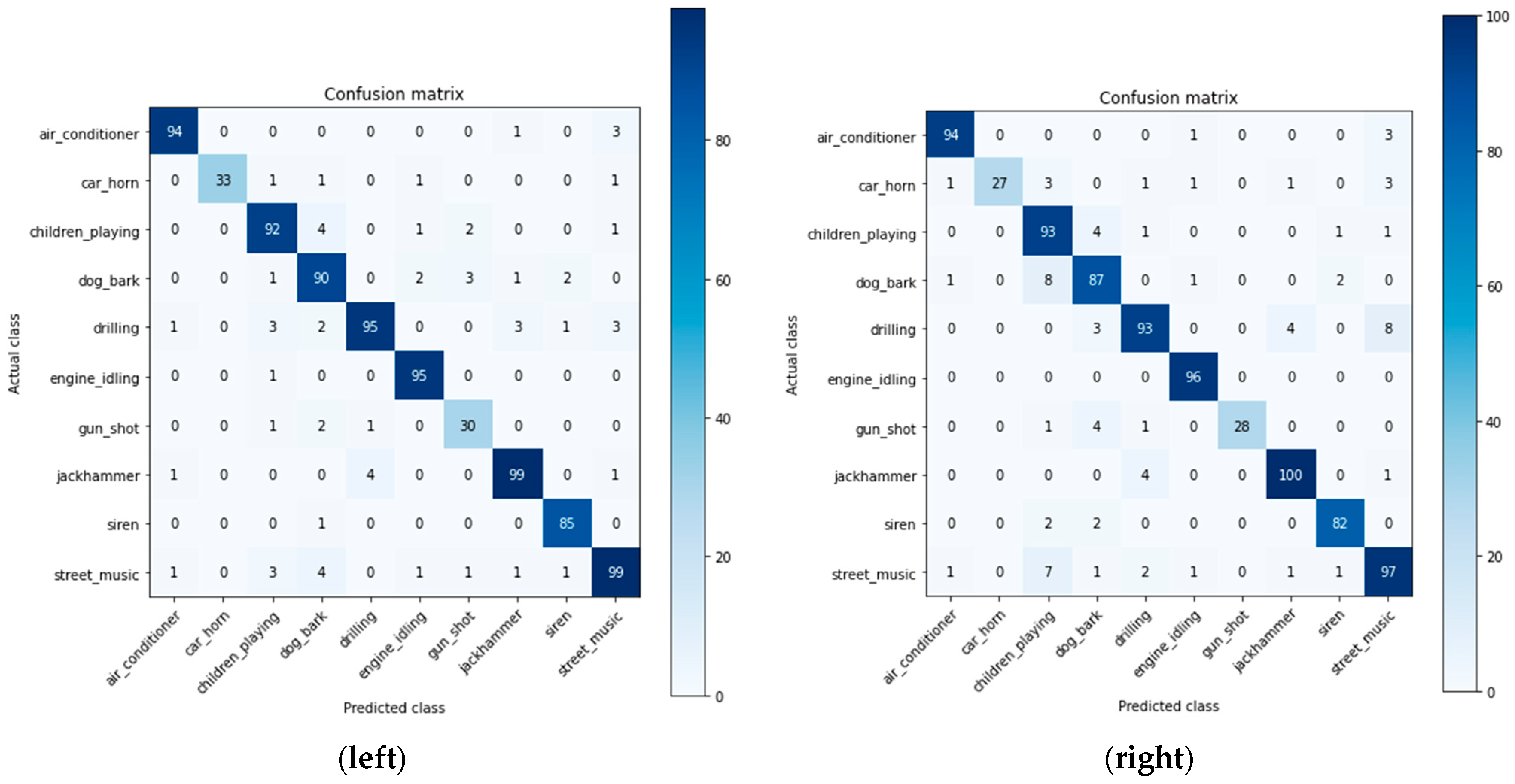 - Massoudi, M.; Verma, S.; Jain, R. Urban sound classification using CNN. In Proceedings of the 2021 6th International Conference on Inventive Computation Technologies (ICICT), Coimbatore, India, 20–22 January 2021; pp. 583–589. [Google Scholar]