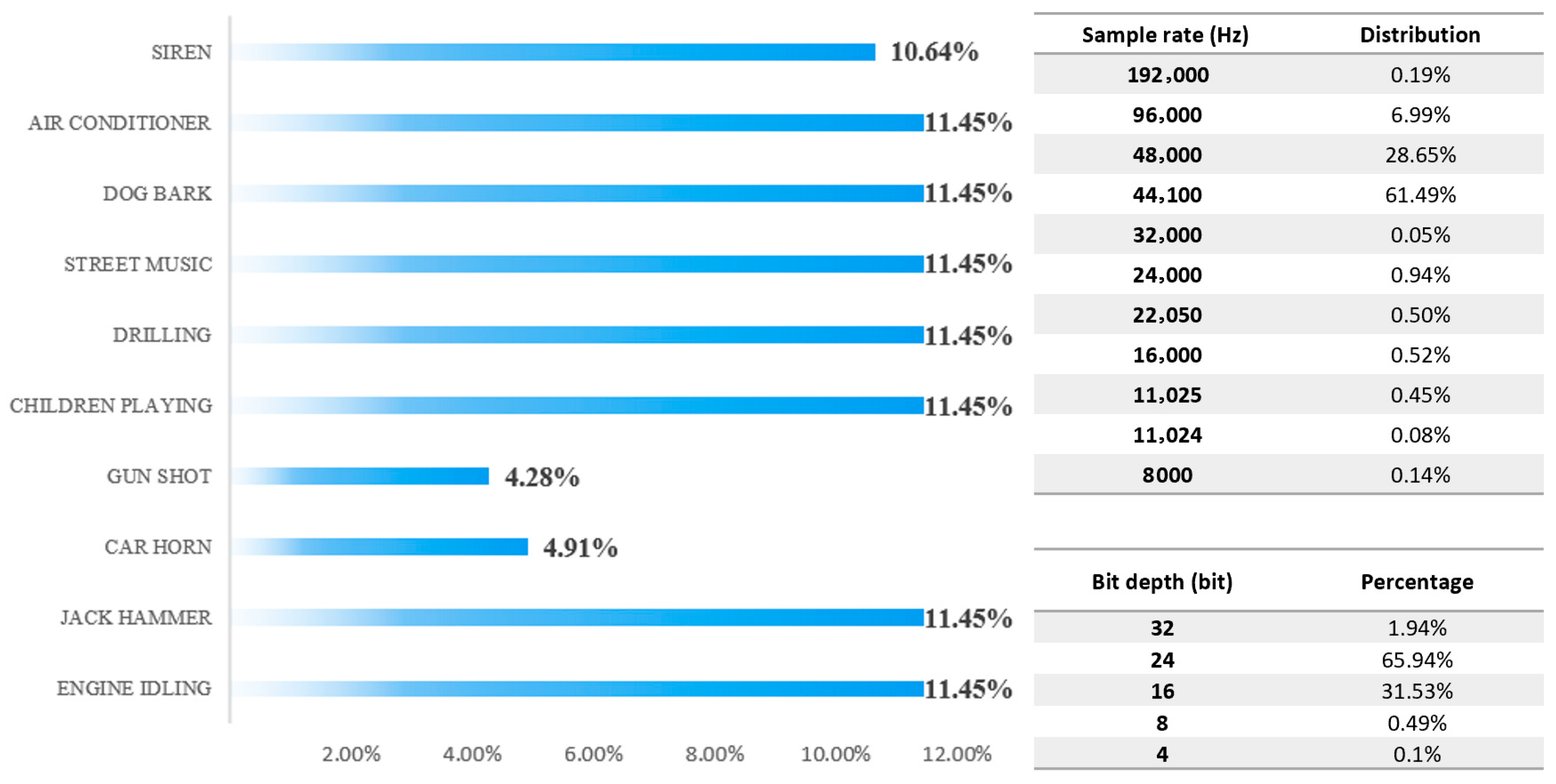 2.2. Analysis and Preprocessing of the Dataset of Acoustic Urban Sound Events