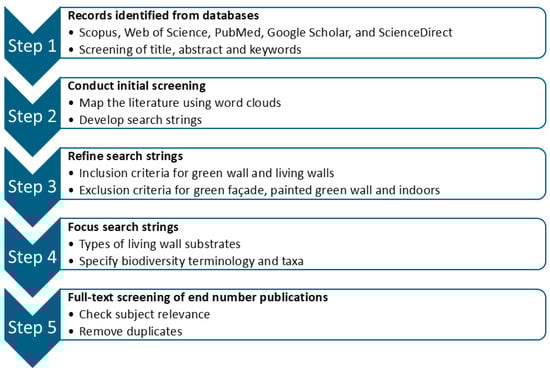 1.2. Scoping Review of Living Walls Biodiversity Benefits Literature