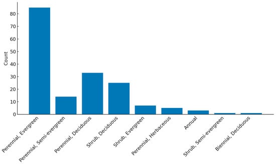 1.3. Floristic Composition and Growth Form of Temperate Living Wall Vegetation