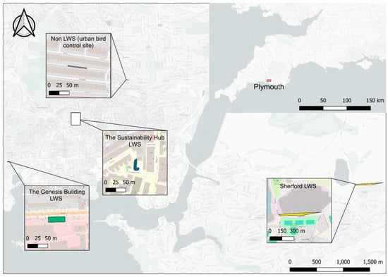 APA StyleLunt, P. H., Buckley, J., Mitchell, S., Thomas, G., Churella, E., & Murphy, T. R. (2025). Biodiversity Performance of Living Wall Systems in Urban Environments: A UK Case Study of Plant Selection and Substrate Effects on Multi-Taxa Communities. Urban Science, 9(12), 519. https://doi.org/10.3390/urbansci9120519