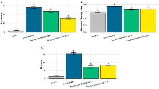 Lunt PH, Buckley J, Mitchell S, Thomas G, Churella E, Murphy TR. Biodiversity Performance of Living Wall Systems in Urban Environments: A UK Case Study of Plant Selection and Substrate Effects on Multi-Taxa Communities. Urban Science. 2025; 9(12):519. https://doi.org/10.3390/urbansci9120519